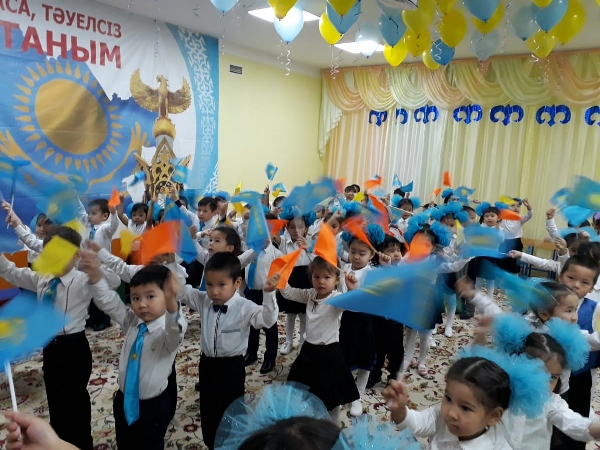 Құрметті қонақтар ,балалар, әріптестер.Сіздерді еліміздің тәуелсіздік күнімен құттықтаймыз.Сіздерге зор денсаулық,ашық аспан Отанымызға тыныштық тілейміз. «Балдырған», « Еркемай», «Қарлығаш» ортаңғы топтары бүлдіршіндерінің дайындыған «Тәуелсіздік тірегім,Қазақстан жүрегім» атты ертеңгілігімізді қабыл алыңыздар.