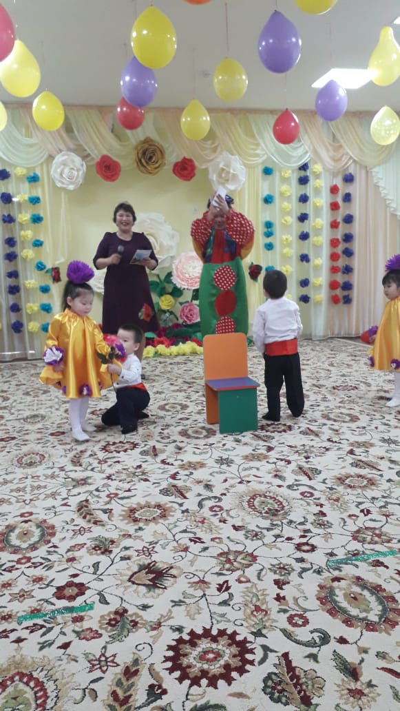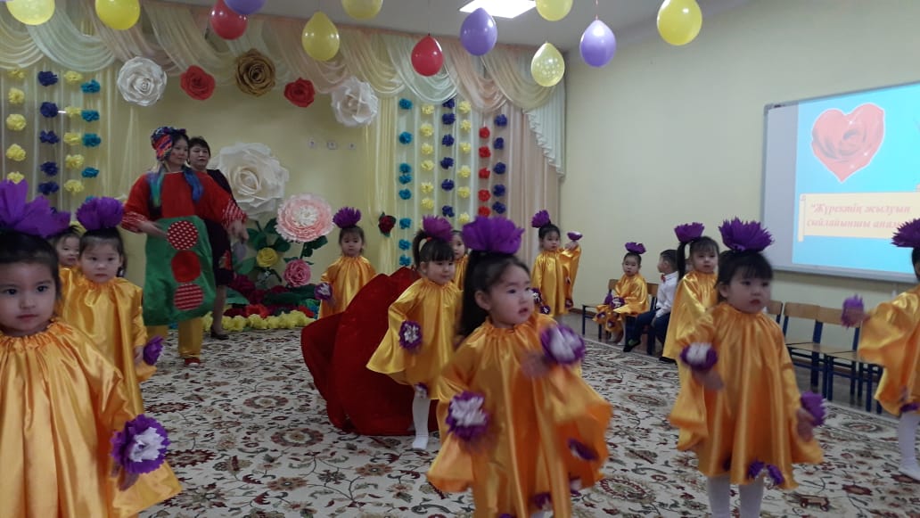 Мақсаты: Балаларға көңіл күй сыйлау.8-наурыз халықаралық мереке екенін ұғындыра отырып, аналарын ешқашан ренжітпеуге,қолғанат болуға,әрқашан құрметтеуге,өзінің жақсы көретін  адамдарын қуанта білуге,мейірімділікке тәрбиелеу.