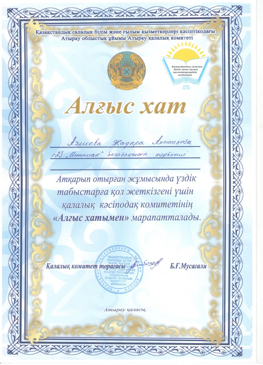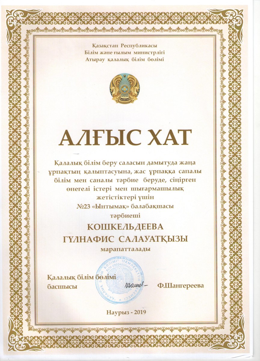 Атырау облысы Білім беру басқармасының Атырау қаласы білім бөлімінің «№23 «Ынтымақ» бөбекжай – бақшасы» коммуналдық мемлекеттік қазыналық кәсіпорны