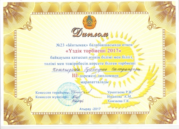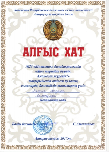 Атырау облысы Білім беру басқармасының Атырау қаласы білім бөлімінің «№23 «Ынтымақ» бөбекжай – бақшасы» коммуналдық мемлекеттік қазыналық кәсіпорны